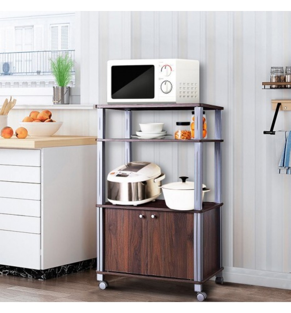 Microwave Rack Stand Rolling Storage Cart-Walnut