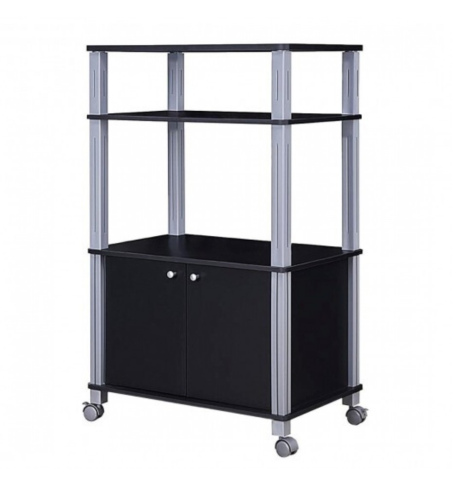 Made of laminated P2 MDF and with solid frames at the corners this stand is sturdy and durable. 3 shelves and 2-door cabinet provides spacious room for storing kitchenware cooking ingredients and other items. You can move it easily with the caster wheels at the bottom. Cleaning and assembly are both quite simple. It is also a versatile cart which can be used in many appropriate places.