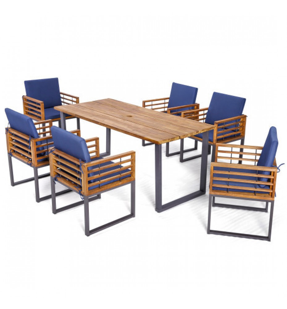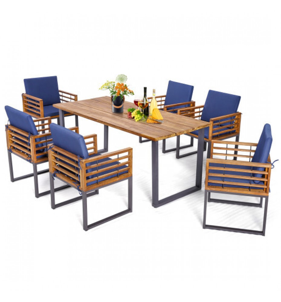 7 Pieces Patio Acacia Wood Dining Chair and Table Set for Backyard and Poolside-Navy