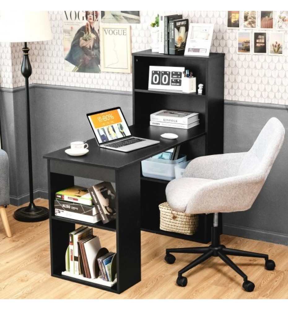 Computer Desk Writing Workstation Office with 6-Tier Storage Shelves-Black