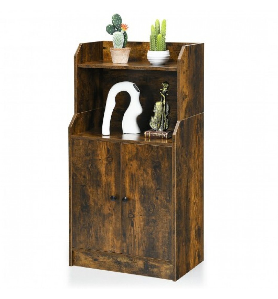 Storage Cabinet Bookcase with Doors and Display Shelf-Rustic Brown