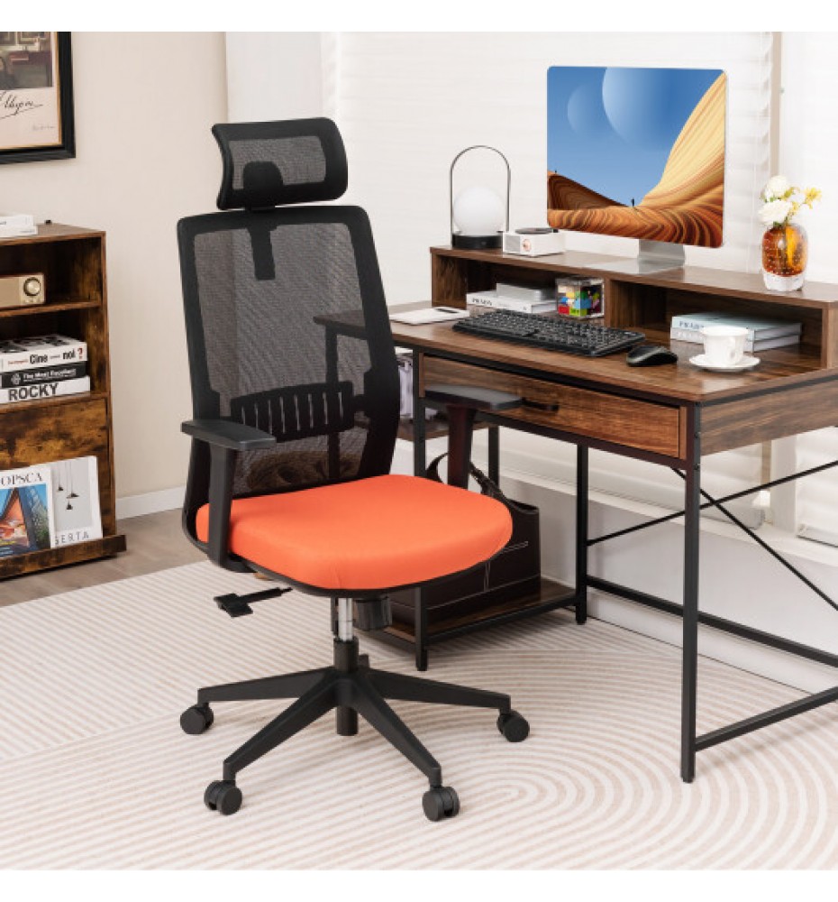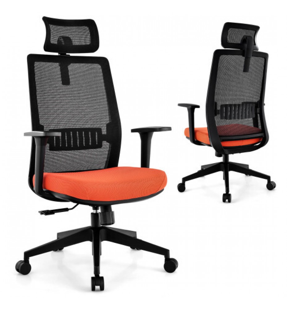 Ergonomic Office Chair with Lumbar Support and Adjustable Headrest-Black