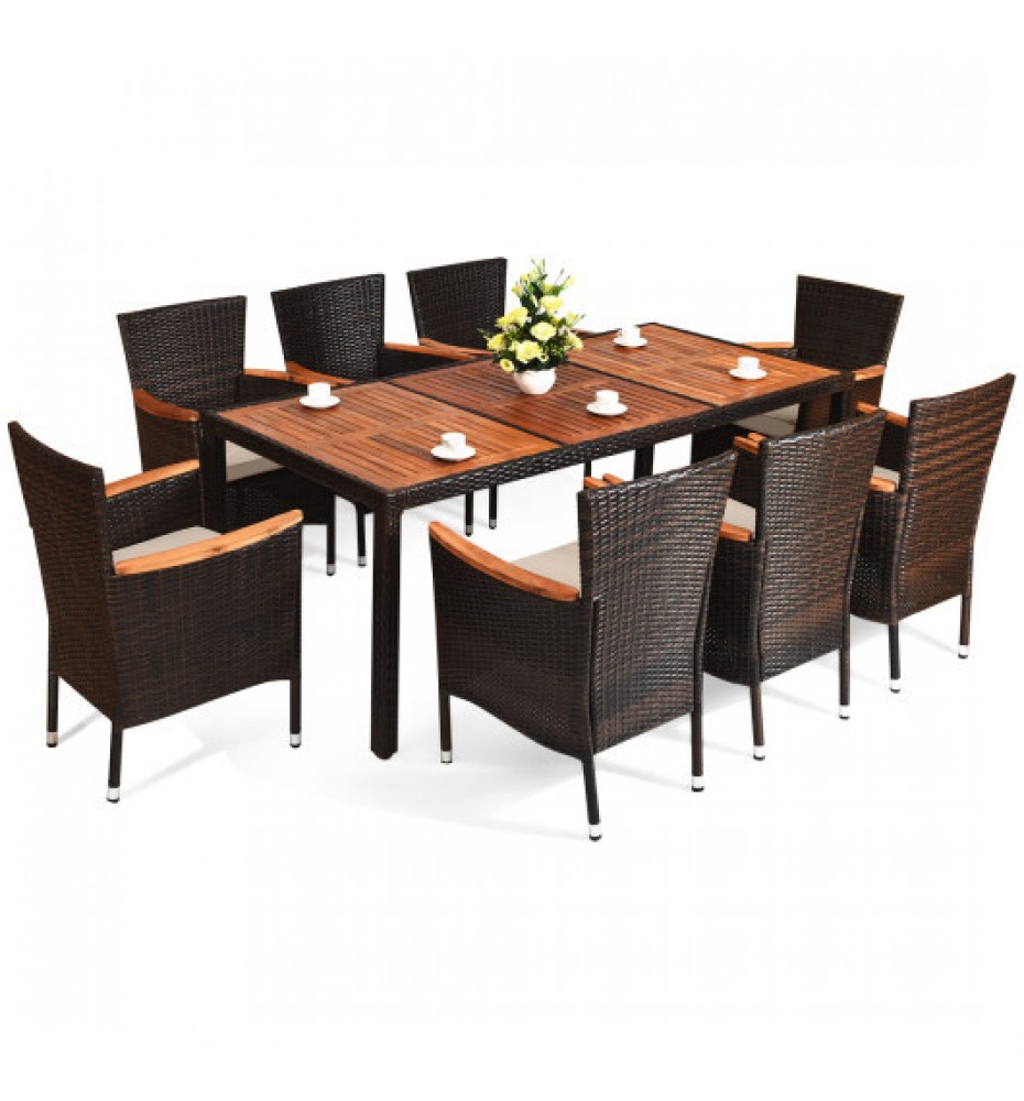9 Piece Outdoor Dining Set with Umbrella Hole