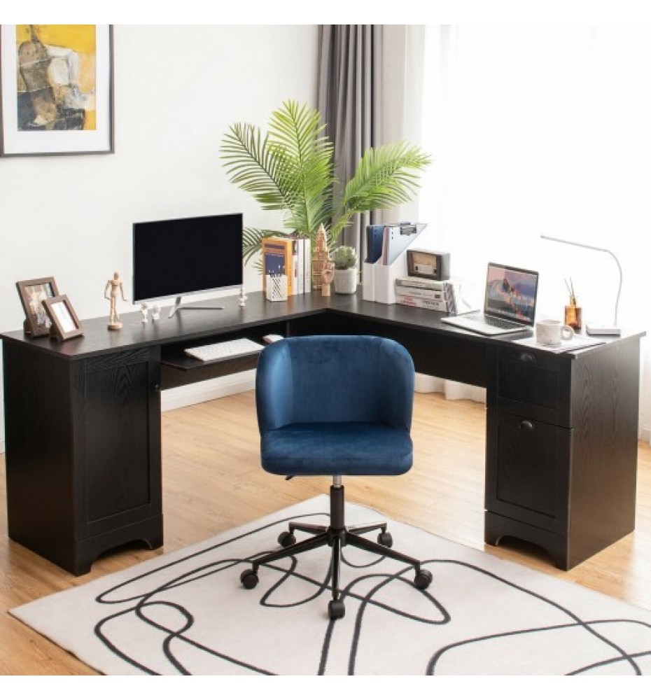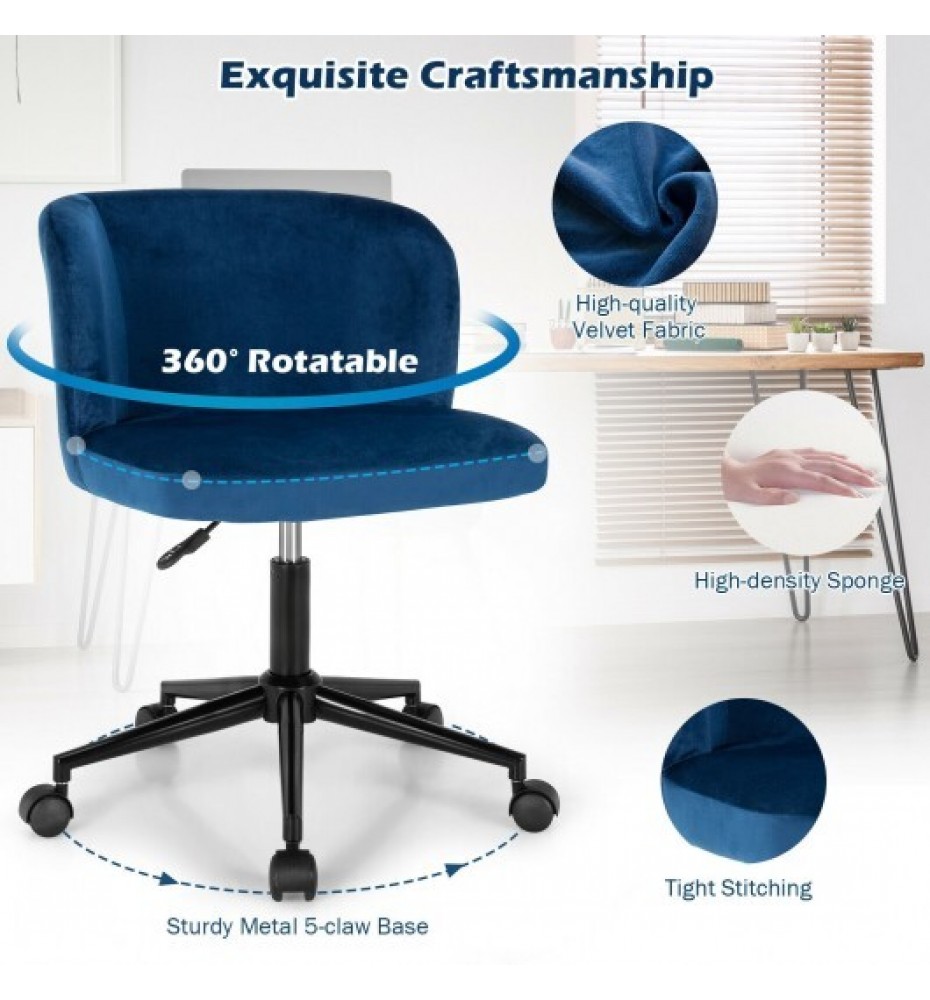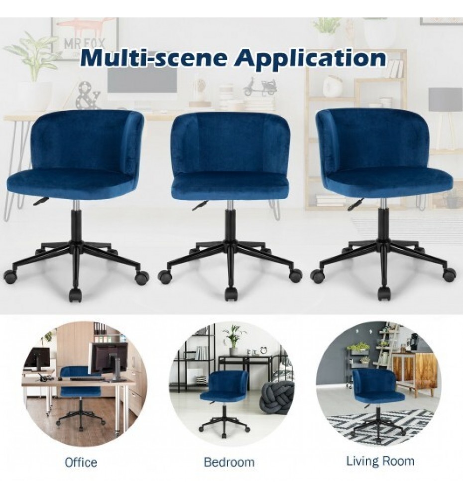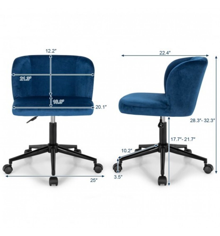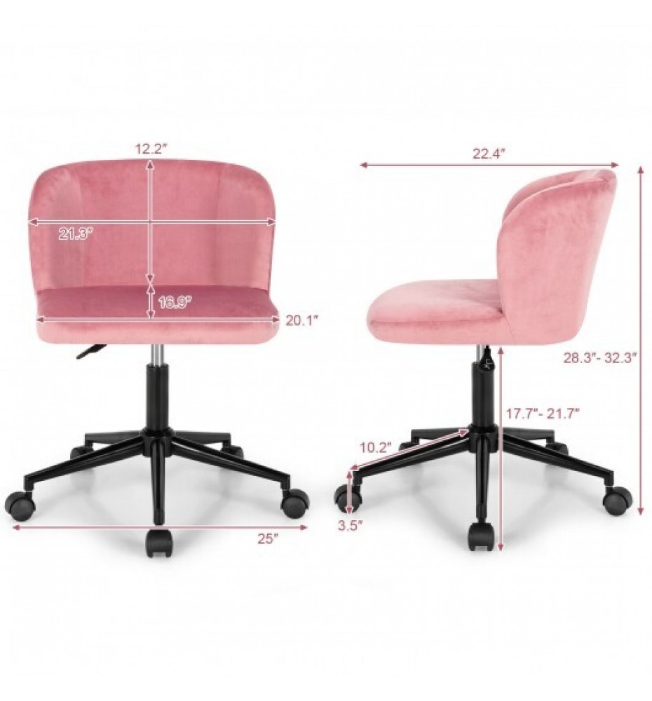 Specifications: Color: Blue/Pink Material: Velvet sponge PP metal Overall dimension: 25" x 25" x 28.3"-32.3" Seat depth: 16.9" Net weight: 14.5 lbs Max weight capacity: 330 lbs Package includes: 1 x Leisure office chair 1 x User guide