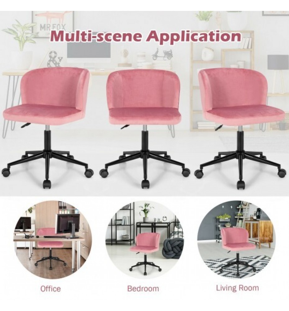 Velvet Leisure Office Chair with Adjustable Height-Pink