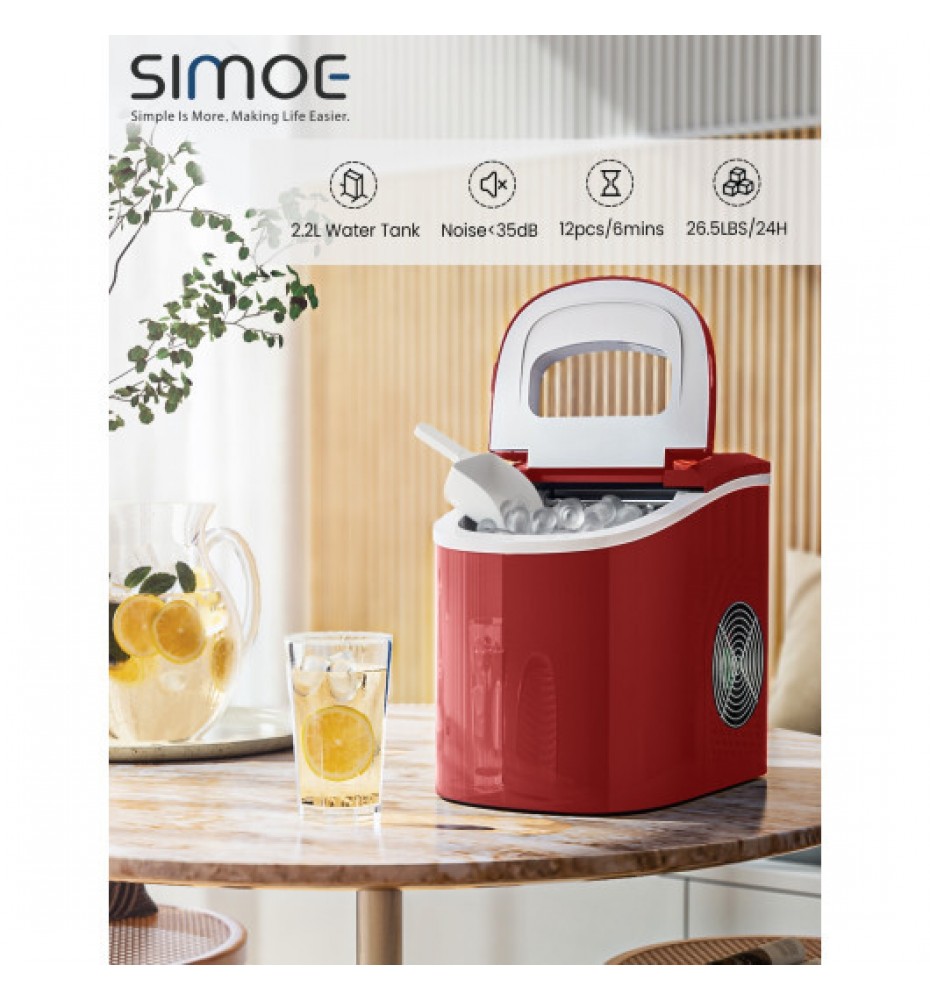Mini Portable Compact Electric Ice Maker Machine-Red