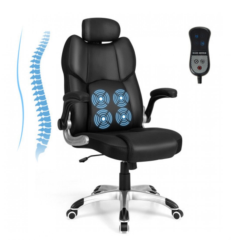 Kneading Massage Office Chair with Adjustable Headrest-Black